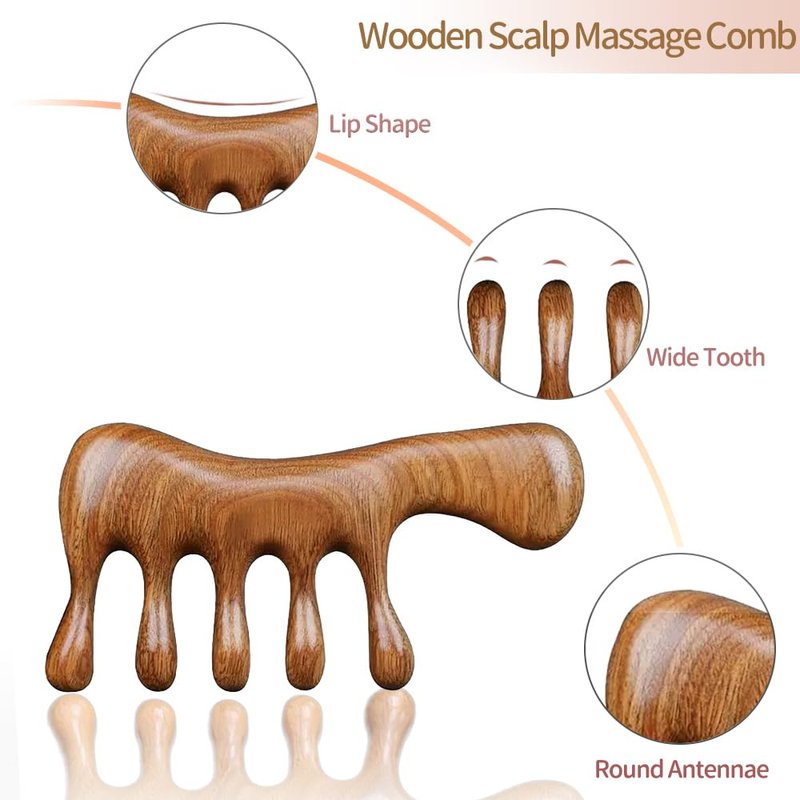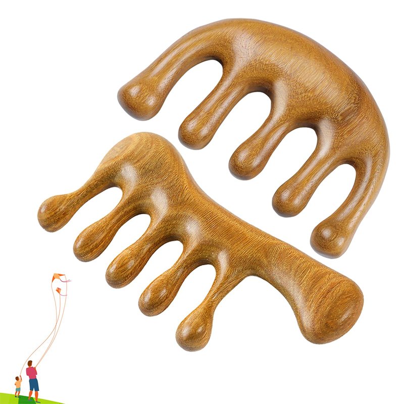 - Sandalwood Head Massager Scalp Stress Relax - Sandalwood is rich in that can nourish your hair. Combing hair and massage your scalp with sandalwood scalp massager can help calm your neck and head, relieve stress and improve your blood circulation, improve your hair growth.