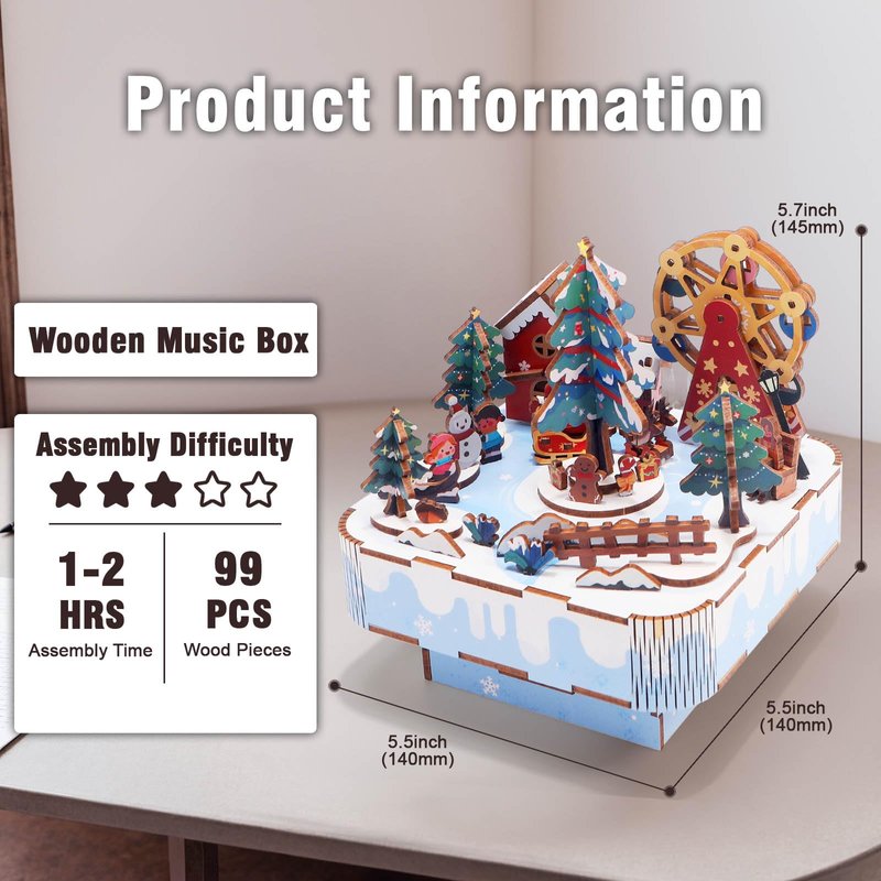 - Perfect Gift for the Holidays: The Christmas Edition 3D Wooden Music Box Puzzle arrives in a beautifully packaged box, making it a fantastic gift for the holiday season. With dimensions of 5.5 x 5.5 x 6.1 inches and 99 pieces, this puzzle is perfect for anyone who loves Christmas, puzzles, or creative DIY activities.