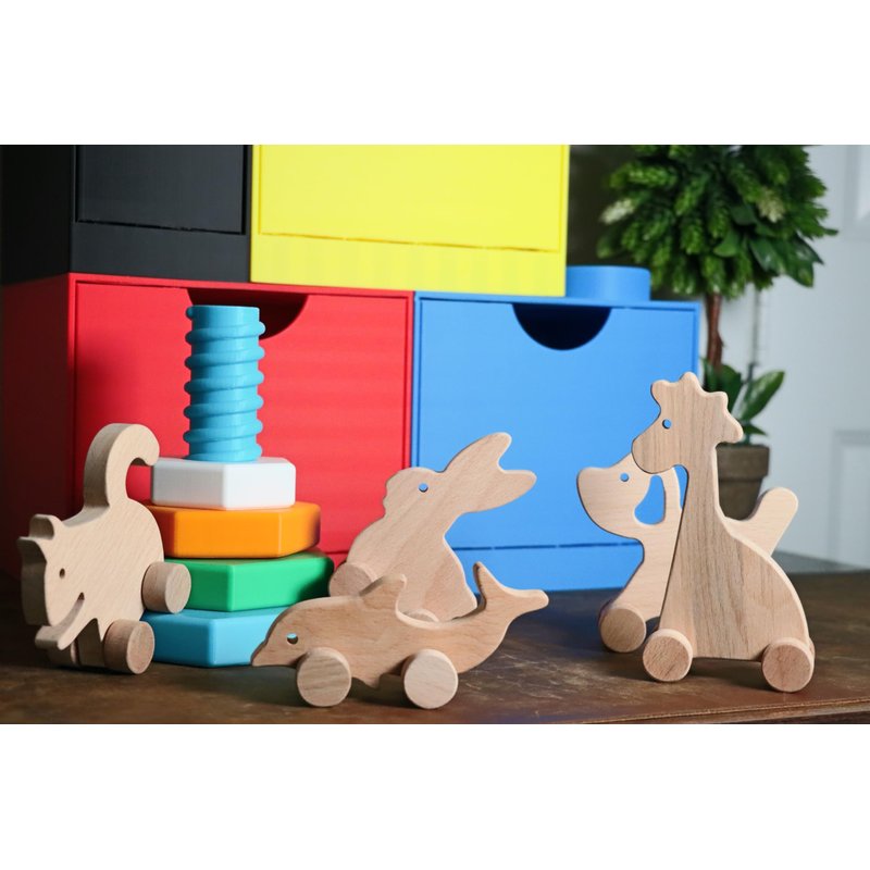 Wooden Puppy Dog Push Toy, Waldorf and Montessori Animal Toy, Personalized Toy Gift, Gift for Baby Shower, Wooden Toy, Personalized