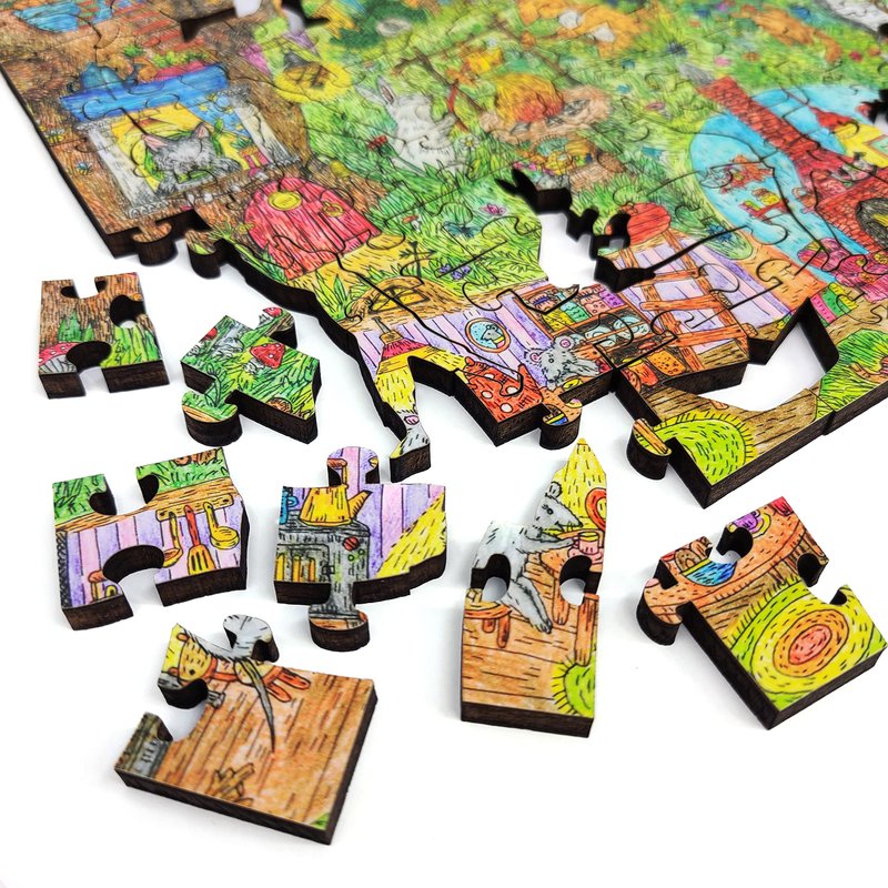 - 🧩 Whimsical Pieces. Each jigsaw puzzle contains dozens of hand-drawn, uniquely shaped pieces, called "whimsies". Whimsies are designed by artists and crafted to match the theme of the puzzle and tell a story. Each puzzle is different!