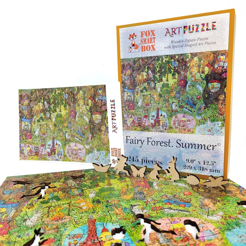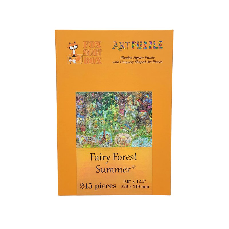 Wooden Puzzle for Adults with Uniquely Shaped Pieces - Made in The USA by FoxSmartBox - 245 Pieces - Fairy Forest. Summer