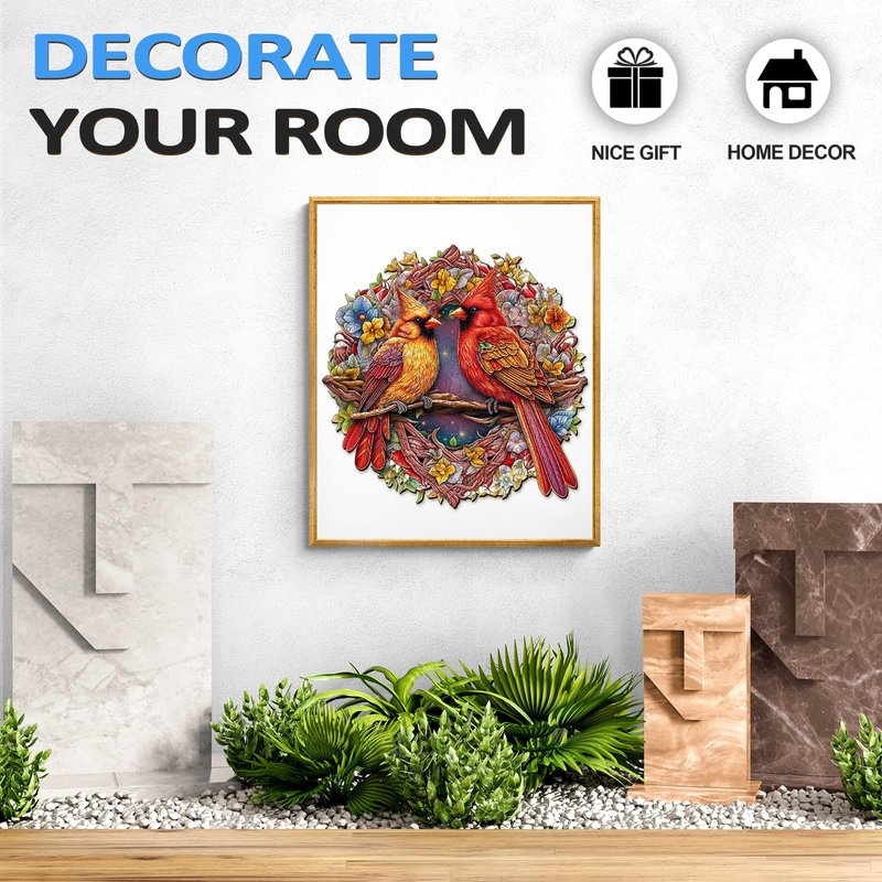 Wooden Puzzles for Adults, Wooden Cardinal Puzzle, 300 Pieces Puzzles for Adults, Birthday Gifts for Puzzle Lover, Family Puzzle Game (L-13.9 * 13.8in)