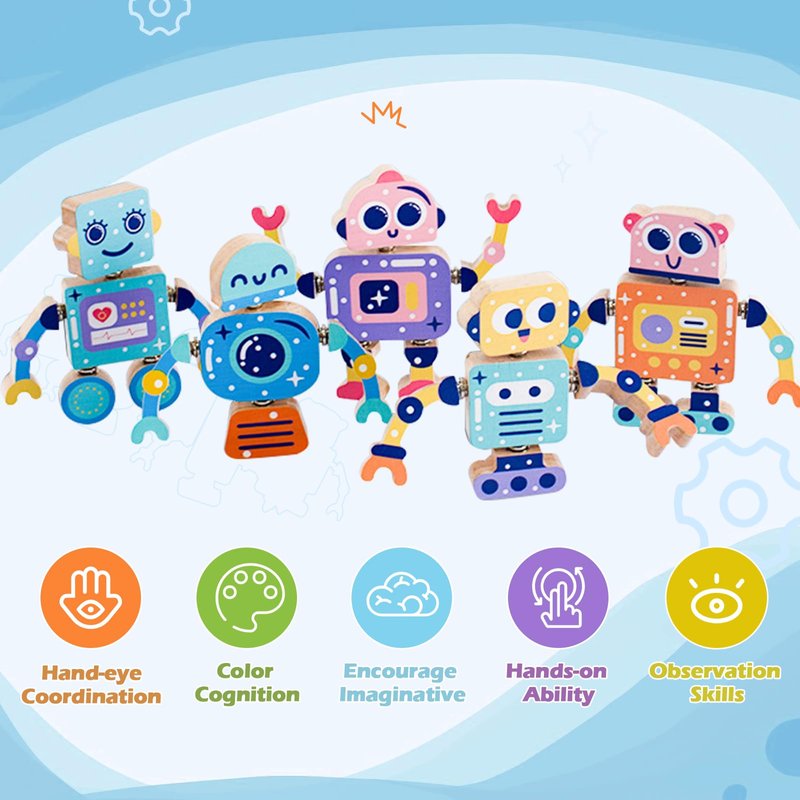 - 【Lasting and Safe to Use】These robot blocks are made from solid wood with smoothed surfaces and rounded corners, ensuring they are 100% safe for kids to play with.Lasting and vibrant water-based paint has no harmful substances and won’t be weathered easily, also they are super easy to clean