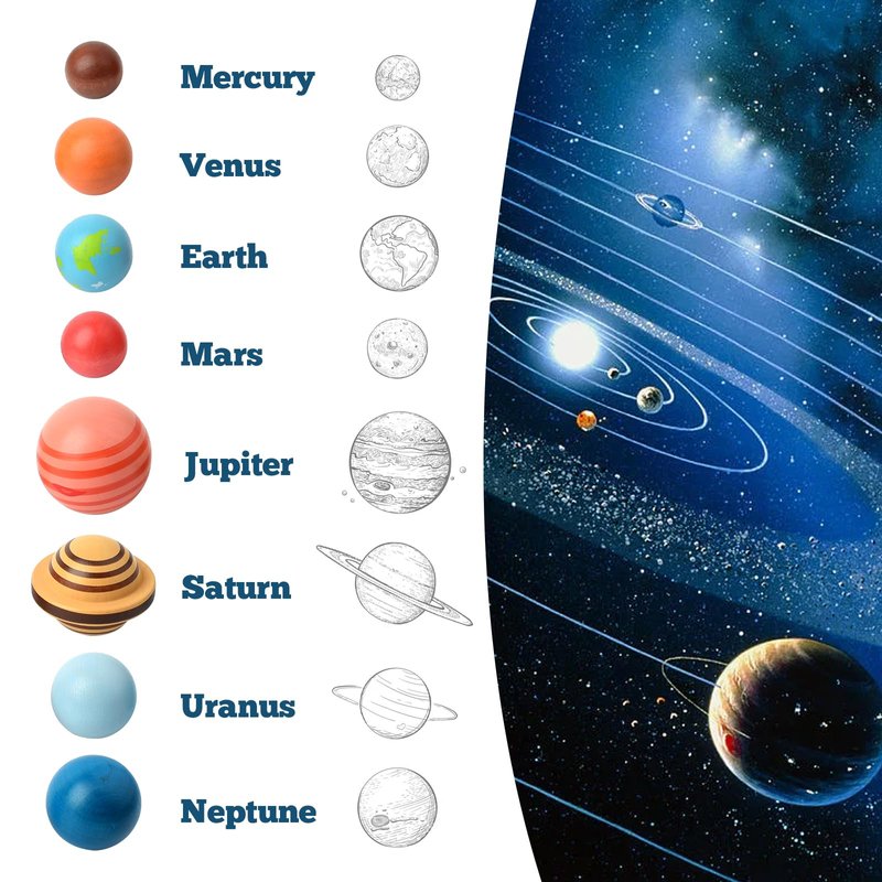 - 【Contents】This toy includes 8 planet themed wooden balls, 8pcs flashcards with explanations for each planet, and 3 pcs puzzles that can be put together to form a cartoon solar system.