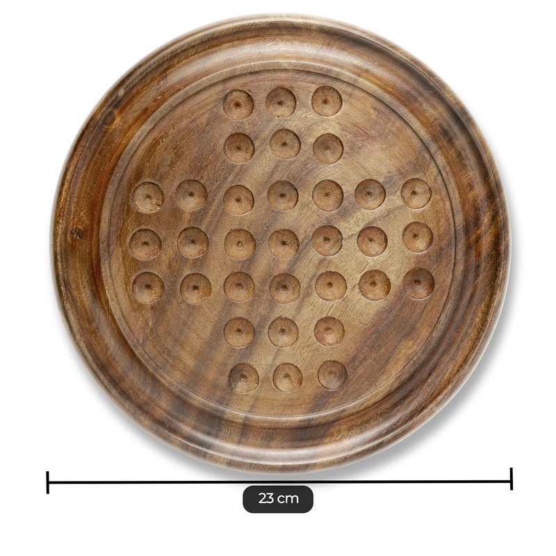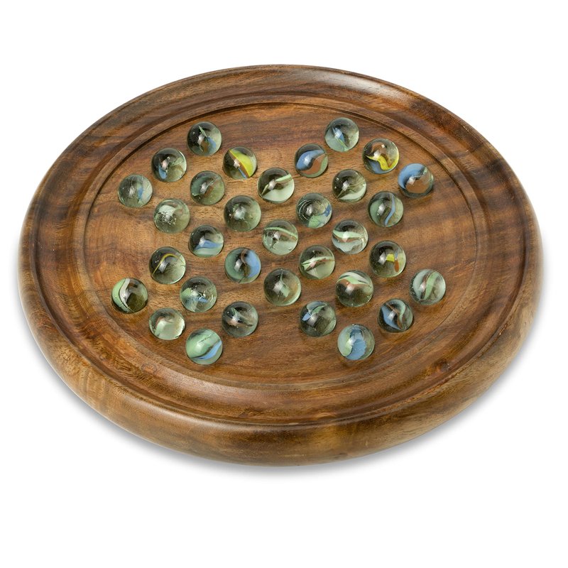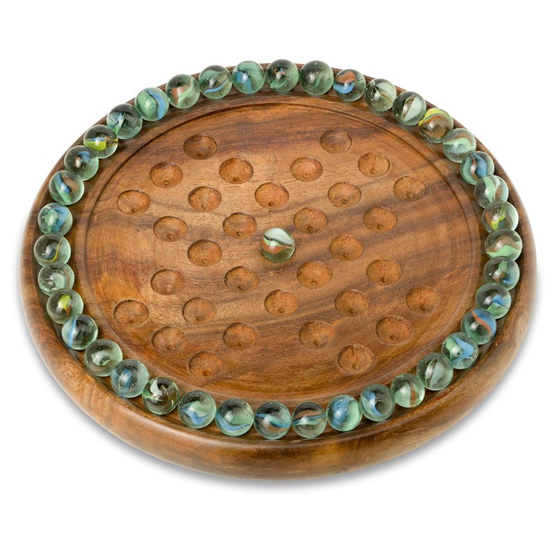 Solitaire Board Game with glass marbles, Classic wooden solitaire game, Indian Handcrafted Sheesham wood game good for mental development – 9 inches diameter