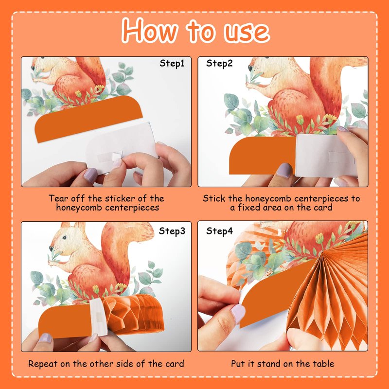 - Reliable Material: The woodland animals honeycomb centerpieces is made of high-quality paper,thick and sturdy.Printed with beautiful and bright patterns, not easy to fade. The honeycomb base is easy to open and can stand firmly on the desktop for a long time.