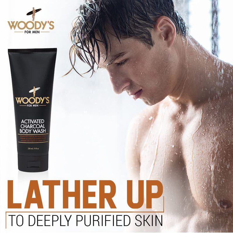 Woody's Detoxifying Activated Charcoal Body Wash with Walnut Extracts, Exfoliating Formula, Deep Clean, 8 Fl Oz