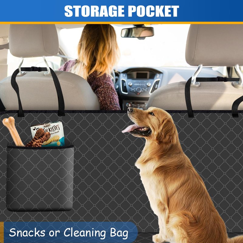 WoofKnows Dog Car Seat Cover for Back Seat Dog Seat Cover with Storage Pocket Dog Hammock Protects Against Dirt Dog Seat Covers for Cars Scratch Prevention Fits for SUVs and Trucks 54"x 58", Black
