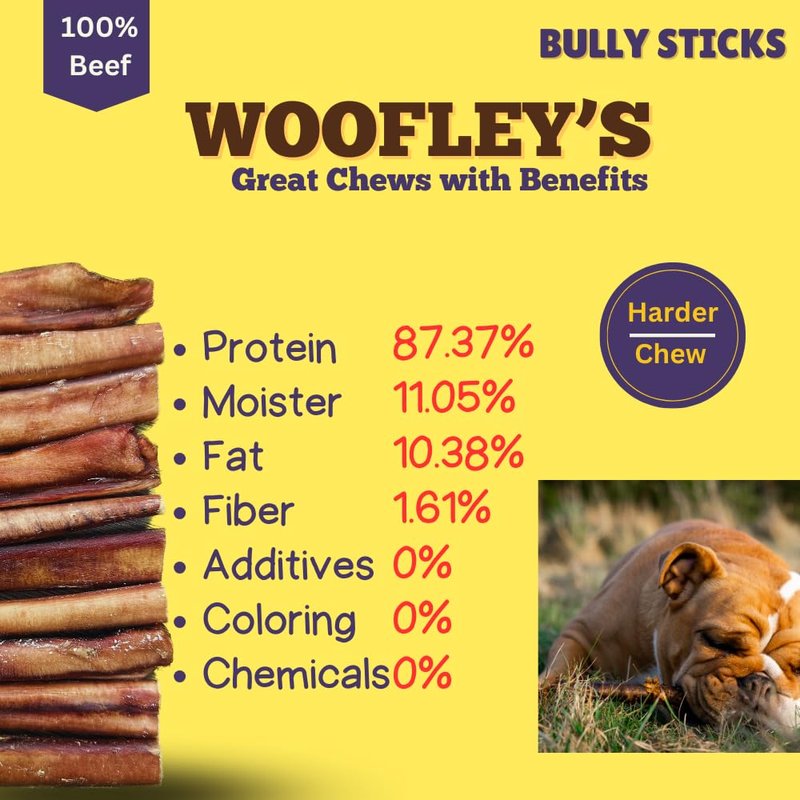 Woofley's 6" Jumbo Thick Buffalo Bully Sticks - (18 Count) - Bully Sticks for Dogs - Long Lasting Bully Stick Dog Chews