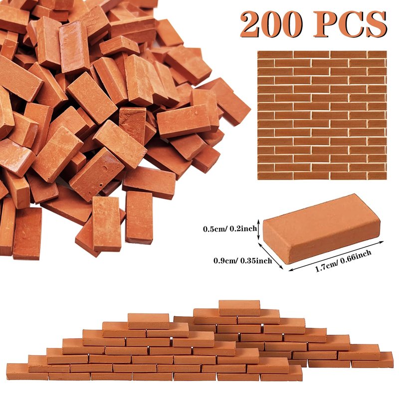 - Dimensions: mini red roof tiles: approx. 20 x 17 x 2mm/ 0.78 x 0.66x 0.14in. Long tiny bricks: approx. 17 x 9 x 5mm/ 0.66 x 0.35 x 0.2in.