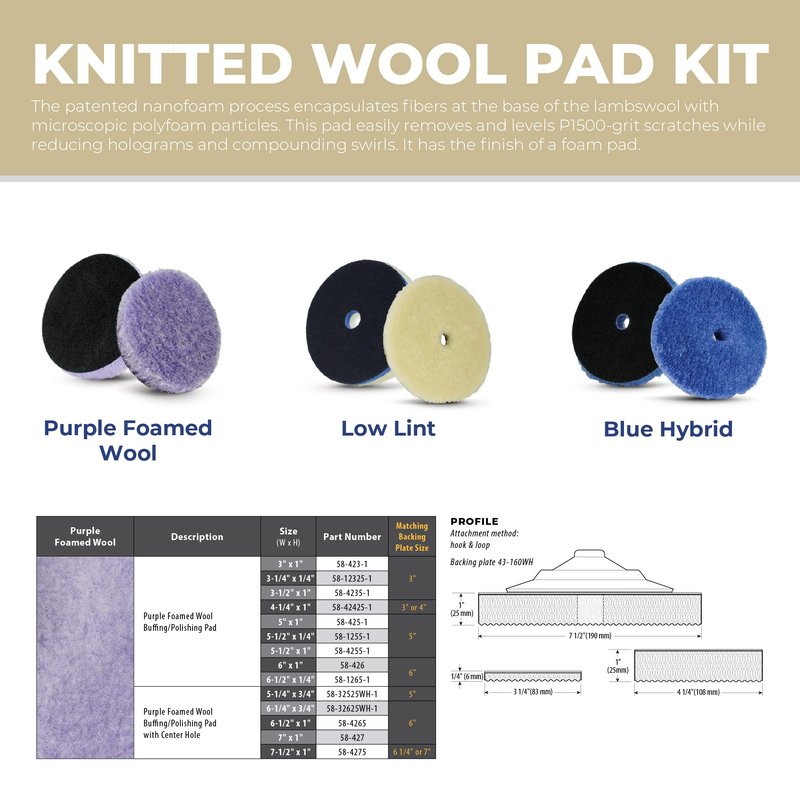 Lake Country Wool Car Compounding Pad (1 Pack, 6.25”): This wool buffing pad for drill are designed to polish your car’s surface with ease and efficiency, removing scratches, swirls, and imperfections. The wool buff pads are made with high-quality materials and offer top performance for your car detailing needs. The wool buffer polisher pad have a soft and fluffy texture that mimics natural sheepskin. This gives your car a glossy and lustrous look that reflects light and enhances its color. The wool fibers are densely packed and securely attached to the backing, preventing them from falling off or linting. This makes the buffing pad cleaner tool durable and long-lasting, as well as gentle on your car’s surface. The foam buffing pads also have a hook and loop system that allows you to attach and detach them easily from your polisher. The hook and loop system of car detailing polisher also helps to smooth out swirls and fine scratches, creating a uniform and flawless finish. The car buffing pads for drill can remove P1500 grit scratches without damaging the surface of the car, making it ideal for polishing. The drill pads for car polishing by Lake Country come in different sizes and shapes to suit your needs. The wool buffing pads are compatible with most polishers and can be used with any polishing compound or wax. --- About Us: Lake Country Manufacturing is a privately owned manufacturer of buffing and polishing products for the industrial; paint, body, and equipment (PBE); detailing, and consumer markets. We strive to find profitable solutions for our worldwide network of distribution partners by developing proprietary products and customized buffing systems.