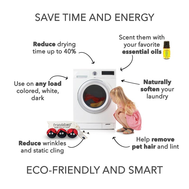 - Sustainable and Eco-Friendly: Handmade, fair trade, compostable, and plastic-free, these dryer balls replace chemically-loaded dryer sheets and liquid softeners, saving energy and reducing drying time by 20% to 40% depending on load size.