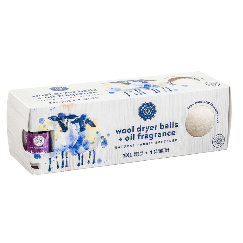 Woolzies Organic Wool Dryer Balls: 3 Pack XL Dryer Balls & 100% Pure Lavender Essential Oil | All Natural Laundry Fabric Softener Balls | Made with 100% New Zealand Wool | Best Essential Oil Balls