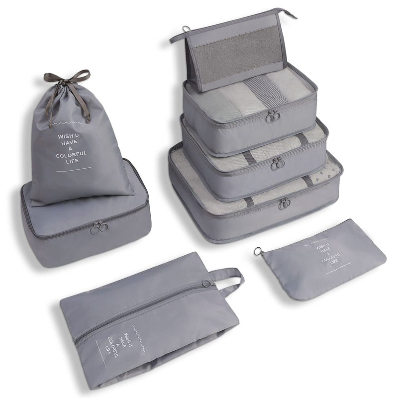 WOOMADA 8 Set Packing Cubes for Suitcases Travel Essentials Luggage Organizer for Travel Accessories Shoe Bag Tioletry Bag Laundry Bag(grey)