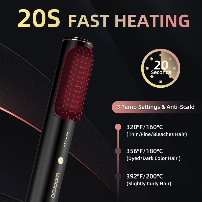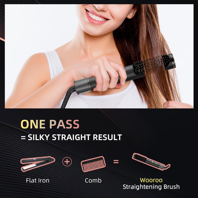 - 【Comb and Hair Straightener in One】Wooroo 2024 developed a new straight hair brush, which combines the ordinary comb and hair straightener into one. You can create super straight hair or design any hairstyle you like in your daily life. Enjoy shiny and smooth hair with Wooroo straight hair comb. Whether your hair is straight, curly, wavy or tightly curled, this hot comb is the perfect way to create the straight, frizz-free hair you dream of