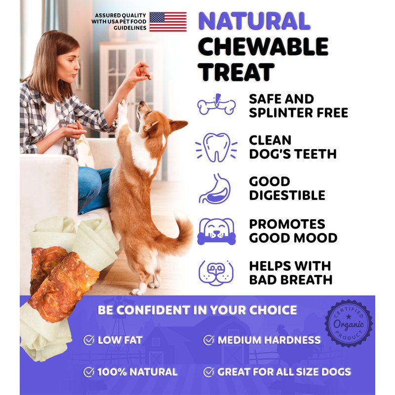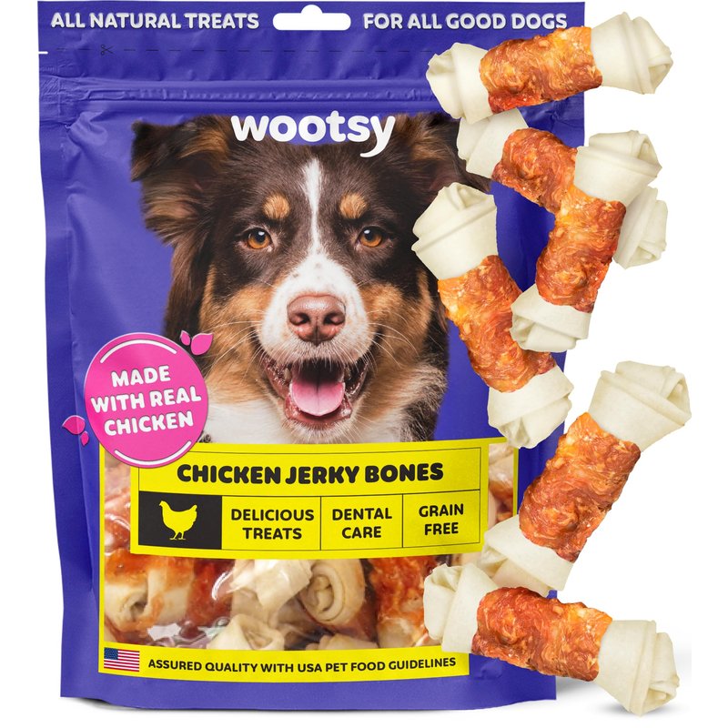 - 𦷠SUPPORTS DENTAL HEALTH: Each chew of our Chicken Jerky Knotted Bones is designed to support your dog's dental health. Not only are these treats tasty, but they also help clean your pet's teeth as they chew