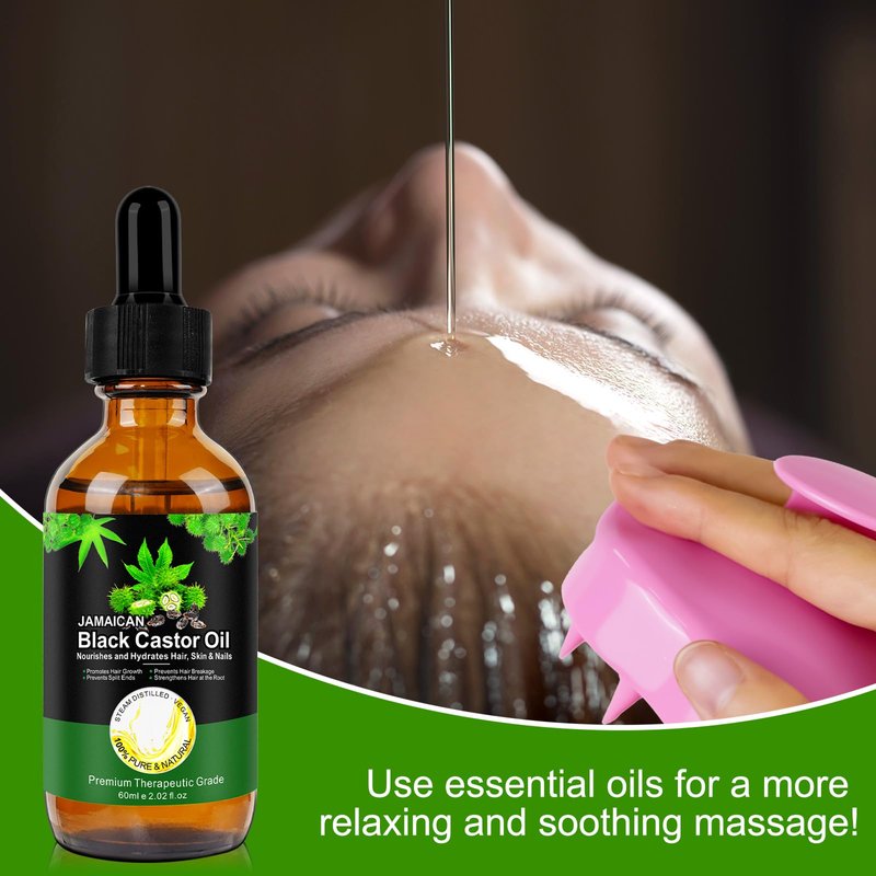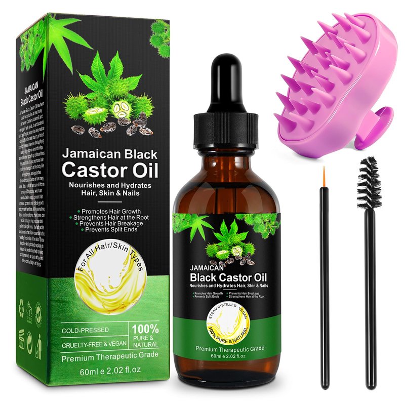 Jamaican Black Castor Oil Kit:1 x 60 ML Jamaican Black Castor Oil1 x Scalp MassagerFeatures:1-Made of natural and non-toxic ingredients, it has no stimulation and does no harm to your hair and won't clog pores.2-Promotes Thicker, Fuller, Healthier3-Smoothing Hair,Intensive Hair Growth4-Hair Repair Effects5-Natural Friendly Formula6-Hair Loss PreventionApplication:1. Repair Revitalize dry, damaged and frizzy hair.2. Improve hair elasticity.3. Hair will feel and look smoother, softer and shinier.4. Jamaican Black Castor Oil can help improve your hair care by working as a dry scalp oil exfoliator scalp cleanser.5. Using an applicator, lightly brush product onto eyebrows and eyelashes, Jamaican Black Castor Oil promoting rapid growth and nourishment of them due to its unique organic ingredients.How to Apply:Using and implementing our hair growth treatment in your daily routine is super easy! All you have to do is use the dropping system on the top of the bottle to measure the oil and then apply it to your hair.
