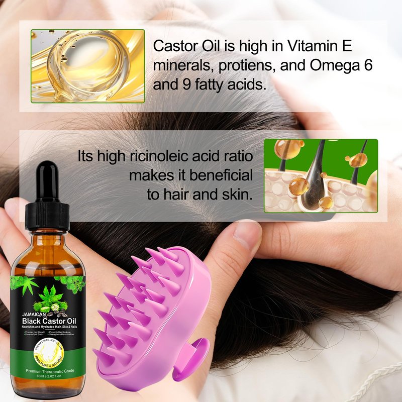 - 【Hair Scalp Massager Brush 】Our Jamaican Black Castor oil set include a Scalp Massager. It is great for all hair types to stimulate collagen production, remove dead skin, ensuring optimal nutrient absorption for maximum hair growth potential.