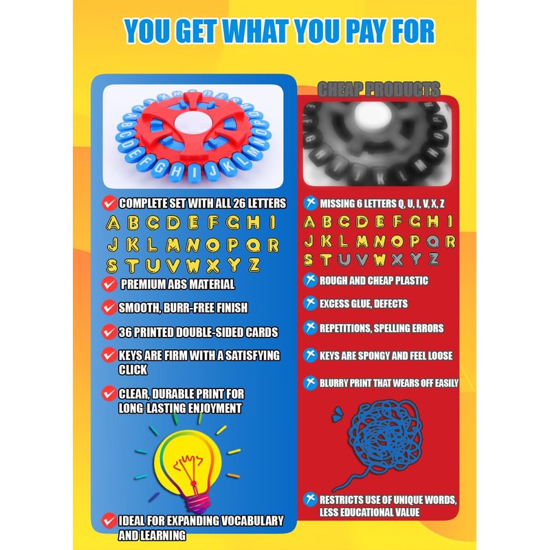 - Full 26-Letter Game Board: No missing letters! Challenge your creativity with a complete alphabet board, perfect for word lovers and language enthusiasts.Batteries Required: 2 AA (not included)
