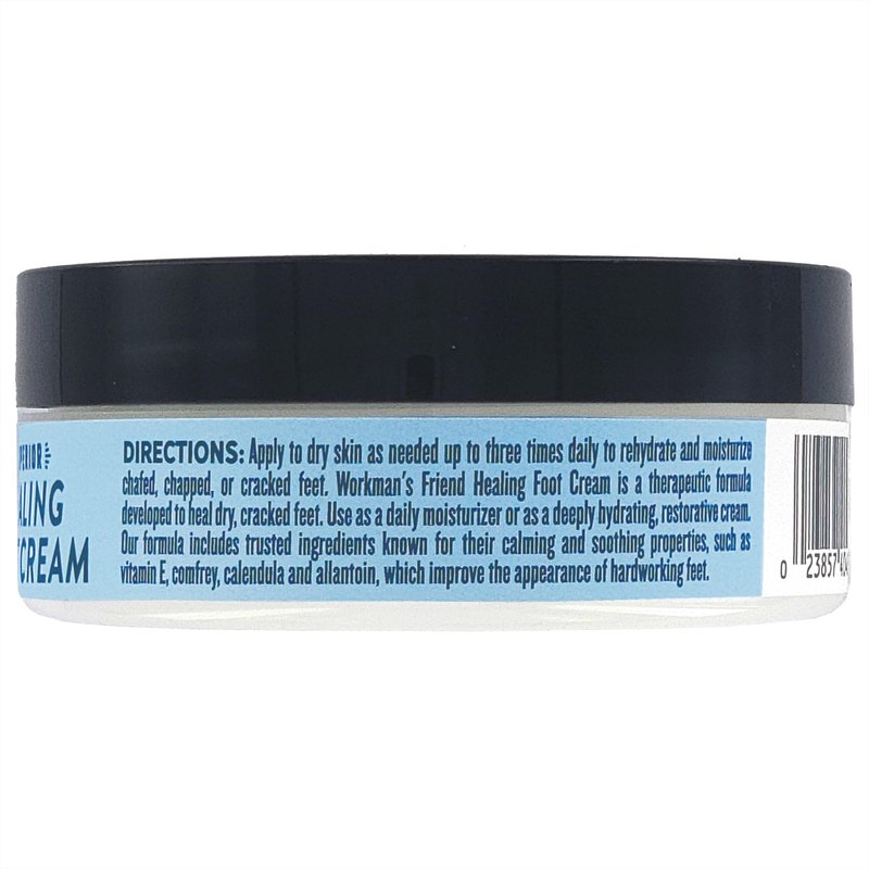Heal, moisturize, and restore your dry, cracked feet with Workman's Friend Healing Foot Cream. Our intense formula was developed to heal dry, chaffed, cracked feet and restore the health of your skin. Designed for active consumers, our skin cream can be used as your daily moisturizer or as a restorative cream to repair your damaged, rough skin. The therapeutic formula includes trusted herbs, such as comfrey, calendula, allantoin, and vitamin E, which are known for their healing and soothing properties. Our extreme foot repair cream is made in the USA using a non-greasy formulation which is a fast-absorbing cream that begins soothing immediately.