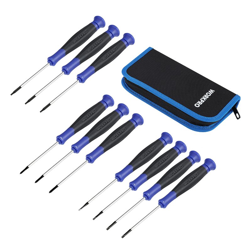 WORKPRO 10-Piece Precision Screwdriver Set with Pouch, Phillips, Slotted, Torx Star, Magnetic Screwdriver Repair Tool Kit, Non-Slip Grip, for Eyeglass, Watch, Computer, Laptop, Phone
