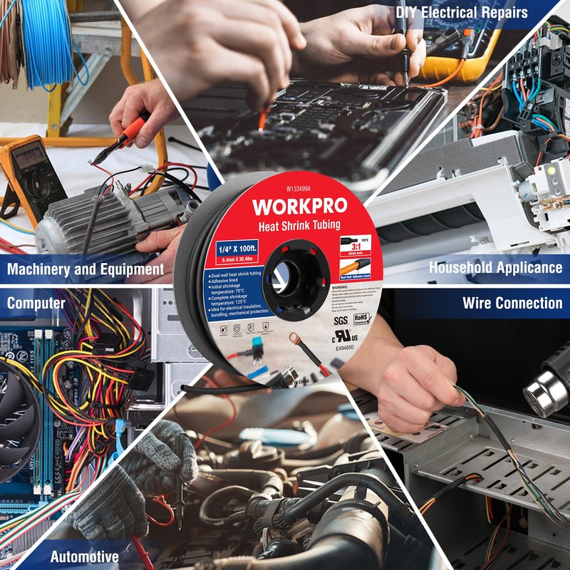 - 【3:1 SHRINK RATIO】WORKPRO heat shrink tubing kit with a 3:1 Shrink Ratio, which can shrink to 1/3 of the original diameter, forming a tighter seal and eliminating the problem of 2:1 tubing not shrinking tight enough. The shrinkage temperature is 70° to 125°.