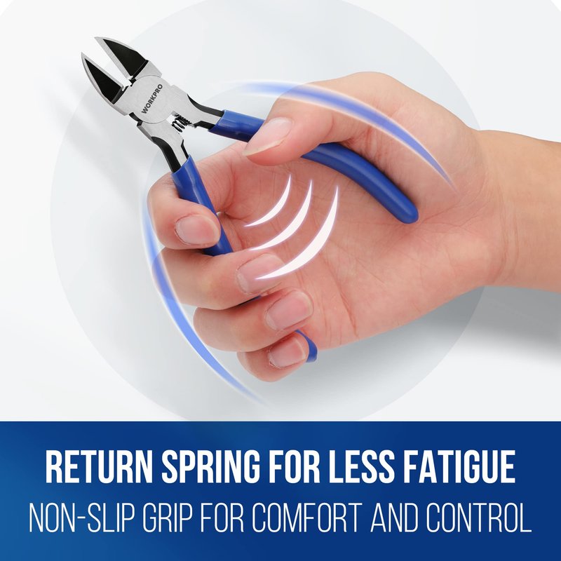 - Specialized Flush Cut: WORKPRO flush cutting pliers deliver superior cutting performance with precision ground blades for clean, smooth and precise cuts. The angled head allows for easier operation in tight spaces.