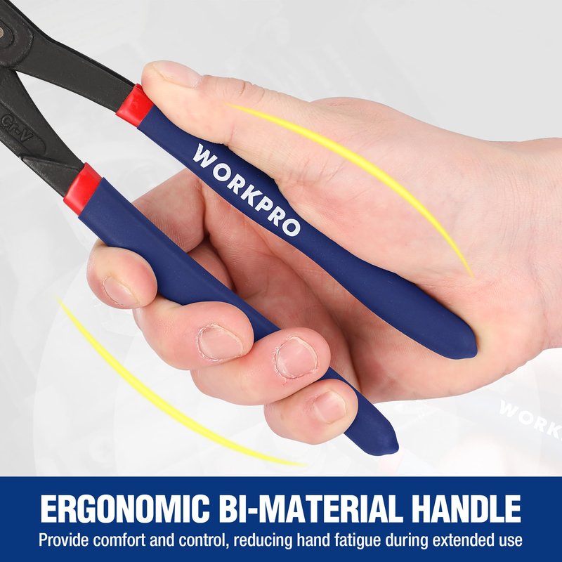 - Durable Construction: WORKPRO tongue and groove joint pliers are made from premium Chrome Vanadium steel for high strength and durability. The polished jaw and black phosphating make the pliers more corrosion-resistant, ideal for plumbers and DIY homeowners.