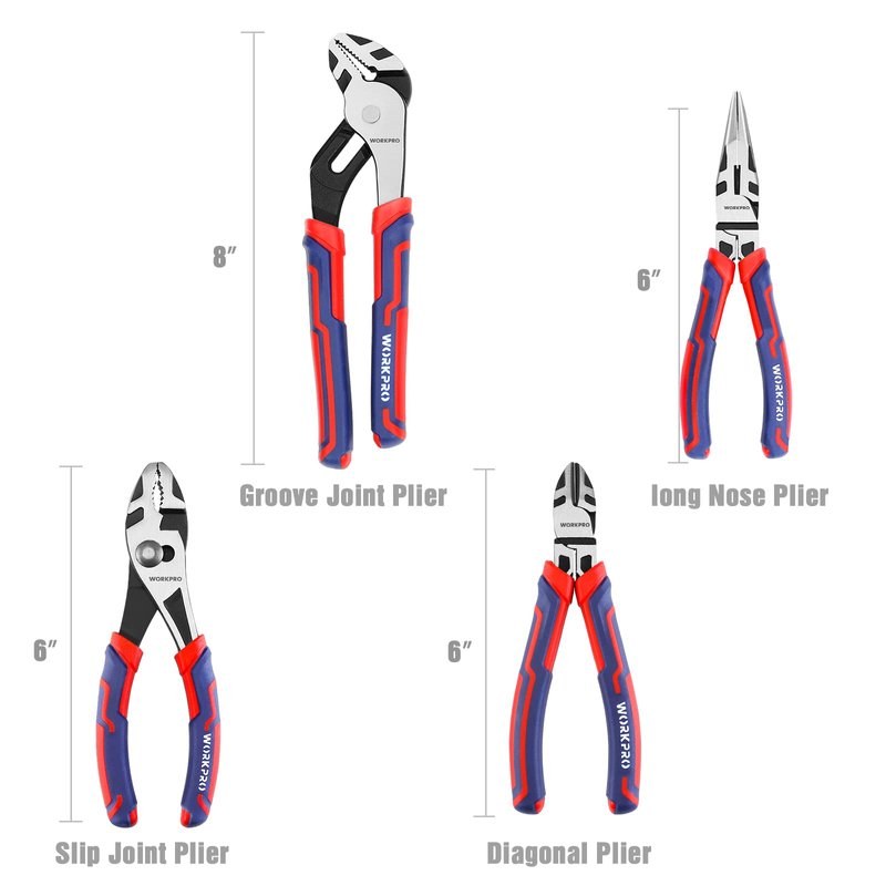 - Ideal Gift: WORKPRO 4-piece plier sets make a great addition to any home maintenance or on-the-job toolbox. It is a great gift for car mechanics, fathers, and husbands!