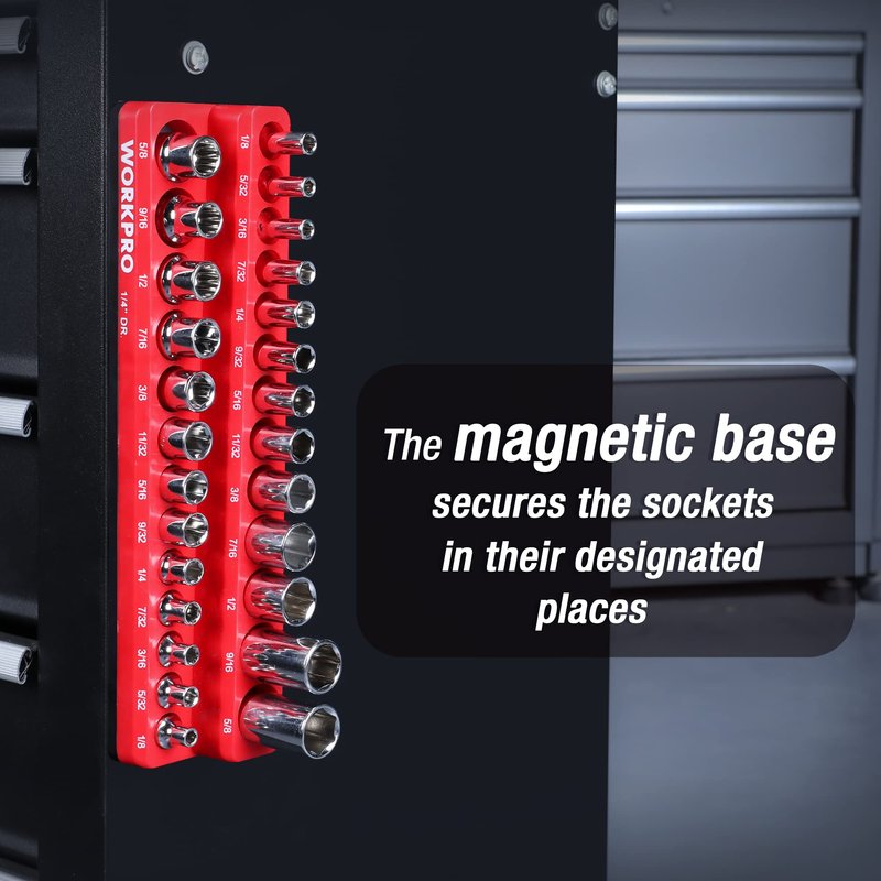 WORKPRO Magnetic Socket Organizer, 1/4-Inch SAE Socket Holder, Socket Trays Holds 26 Pieces Standard Size and Deep Size Sockets(Socket not Included)