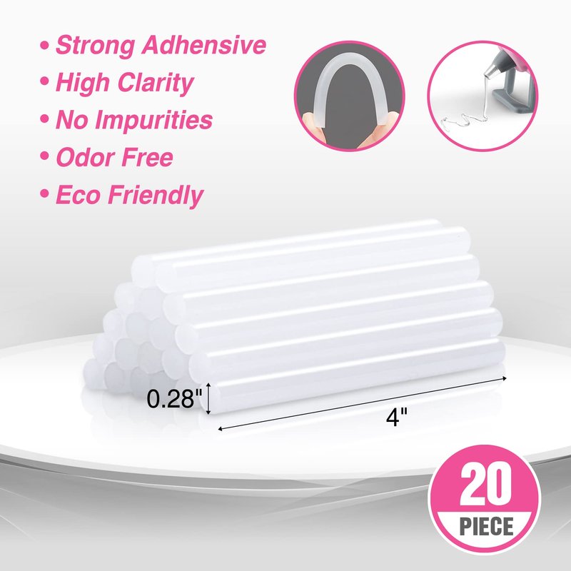 - Mini Glue Sticks: Coming with 20pcs environmental-friendly and strong-adhesive glue sticks of 0.28''(Diameter)x4''(Length), which can well protect your health and items. Attention that do not pull out the melted glue stick after work, keep it inside for next use, otherwise it will damage the glue gun