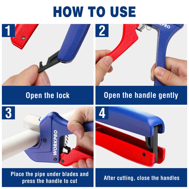 - 【After-sale Service】Cutting PVC or CPVC it does a great job. If you need the cuts to be perfectly straight, you will need to support the pipe from both sides. These cutters perform very well at making easy, fast cuts. If perfection is desired though, consider some ratcheting PVC cutters. If you have any problems or dissatisfaction with our products, please feel free to contact us. The WORKPRO after-sales team will contact you in time to solve your problem