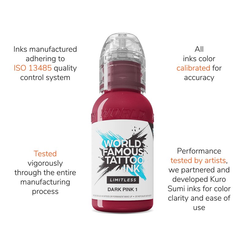 World Famous Limitless Tattoo Ink, Vegan Professional Premium Permanent Tattooing Inks, Dark Pink 1, 1 oz