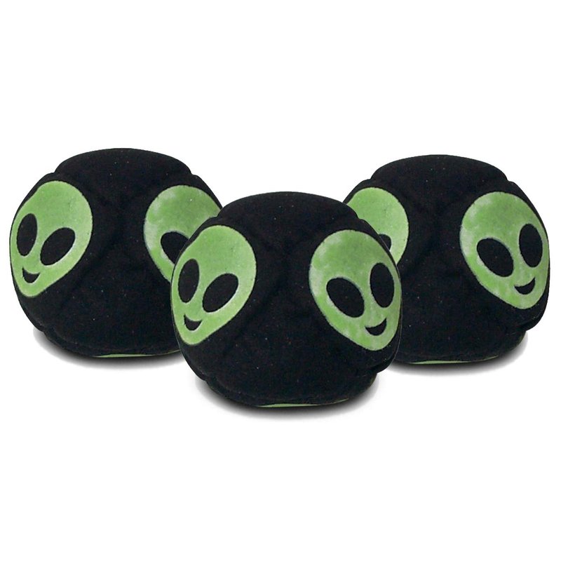 World Footbag Alien Glow-in-The-Dark Hacky Sack Footbag - 3 Pack,Black