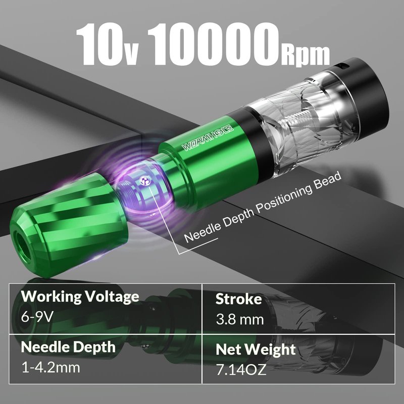 - 🔋Powerful Motor: The tattoo machine is equipped with a high-quality motor, which is a high speed, low noise, and stable operation. Stroke: 3.8 mm, 1-4.2mm adjustable needle depth. Working voltage: 6-9V. Speed: 10V 10000Rpm, work great for a liner or a shader. The powerful wireless tattoo machine can help you to finish a healthy and beautiful tattoo.