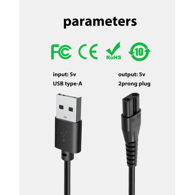 - Specifications & Convenience: The 3.3ft (1m) cable features a USB Type-A to 2-Prong Plug design, delivering an output of DC 5V 1A, 5W (max). Also included is a shaver cleaning brush for easy maintenance, ensuring your trimmer stays in top condition
