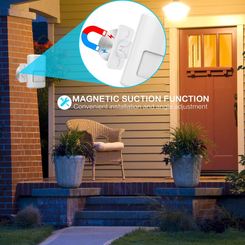 - Wireless Installation: No wire required, 2 optional methods to mount, you can install the base on wall with screws (need punching), or secure the base to wall with magnetic sticky sheet (No punching). The sensor can be adjusted any angles in all directions, meet your different sensing angle requirements.