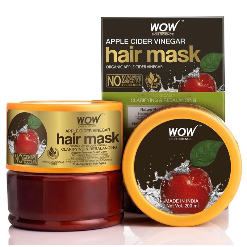 WOW Skin Science Apple Cider Vinegar Hair Mask - Deep Conditioner with Argan Oil, Anti-Dandruff, Anti-Frizz, Smoothing & Strengthening Hair Masque, Restore Shine & Volume - All Hair Types - 200 ml