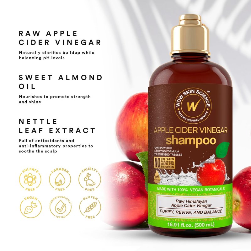 WOW Skin Science Apple Cider Vinegar Shampoo - Hair Growth Shampoo For Thinning Hair, Hair Loss & Dandruff Shampoo - Parabens & Sulfate Free Shampoo (Brown, 16.9 Fl Oz (Pack Of 1))