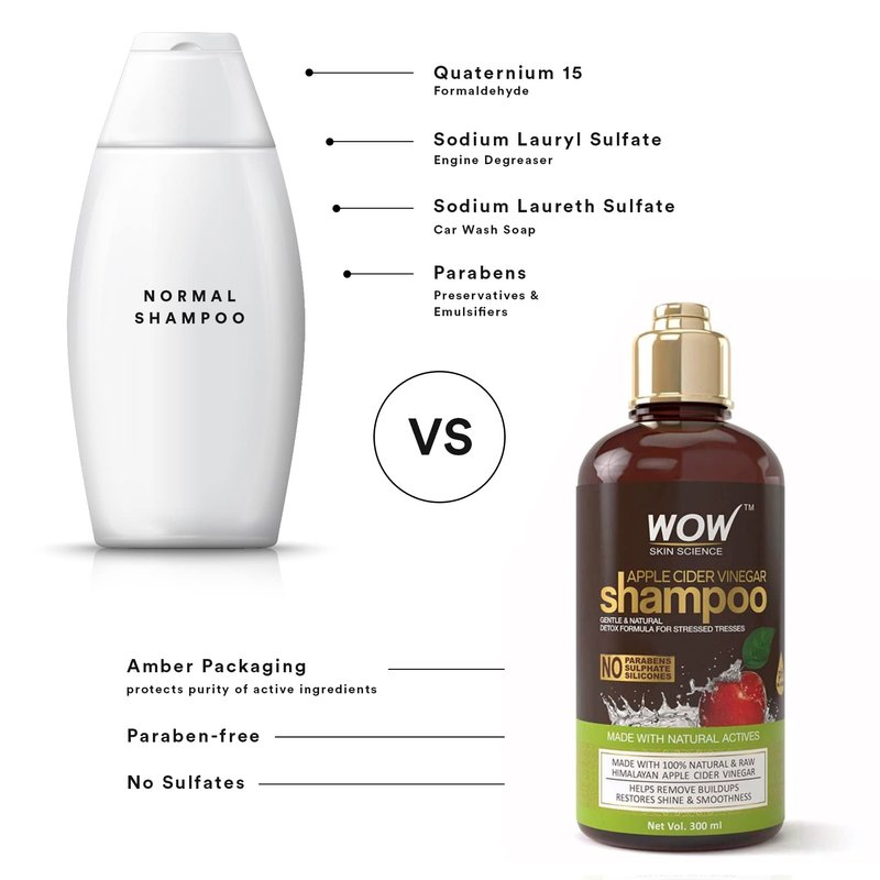 - Natural ingredients of our WOW Apple Cider Vinegar Shampoo are hypoallergenic, sulfate, and paraben-free for moisturized and hydrated hair. Massage scalp and stimulate hair follicles. All our products are cruelty-free and do not contain animal-derived ingredients