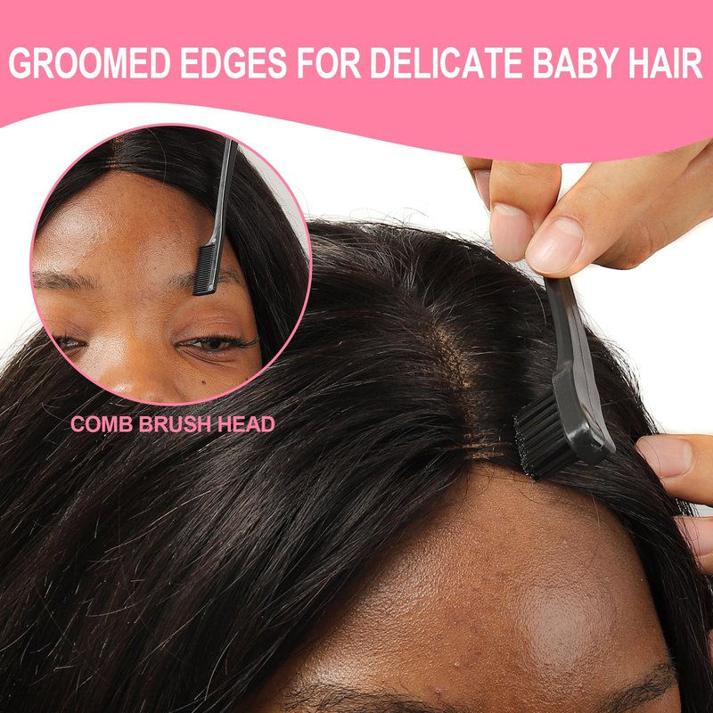 - Functions of Different Comb and Brush: Double-sided hair edge brush is made of plastic, refines the appearance of your hair, arranges the messy edges, and makes hairs smooth, little comb teeth are used for eyelashes and eyebrows. The wig accessories melt band is super soft and stretchy. It is effective on both glued and glue-less installs/wigs.