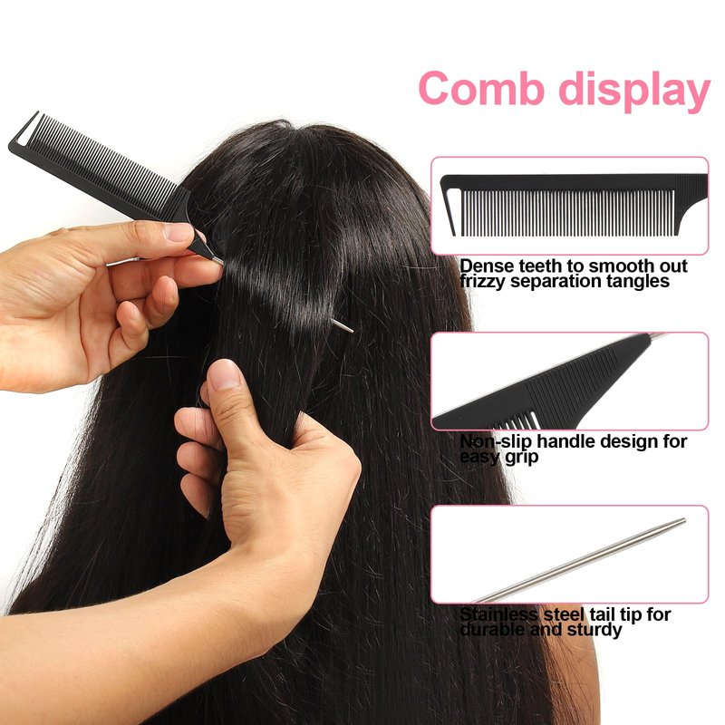 - Teasing Brushes Set for Hair Care: 4 pieces of hair control tools, including 6.8 inches double-sided hair edge brush, 8.5 inches 3-row salon bristle brushes, 8.6 inches pin tail comb, and 23 inches lace melting band for Wigs.