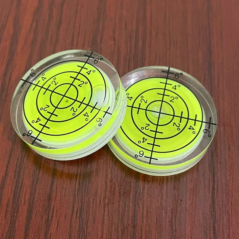 - Type: 6 Pieces 32x7mm diameter miniature bubble spirit levels, round level, tripod level, camera level, rv bubble level, bullseye bubble level measuring tools. Bubble circle level, bubble level round surface, level surfaces in all directions. Mounting method: free standing, bubble level flat, can used with double faced adhesive tape.
