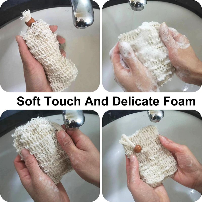 - ππ[High-Quality Material]: The soap bag is a high-quality natural material. The rough surface can clean and exfoliate well, and the delicate surface is skin-friendly and has good foaming effect. Fiber material is environmentally friendly and healthy.