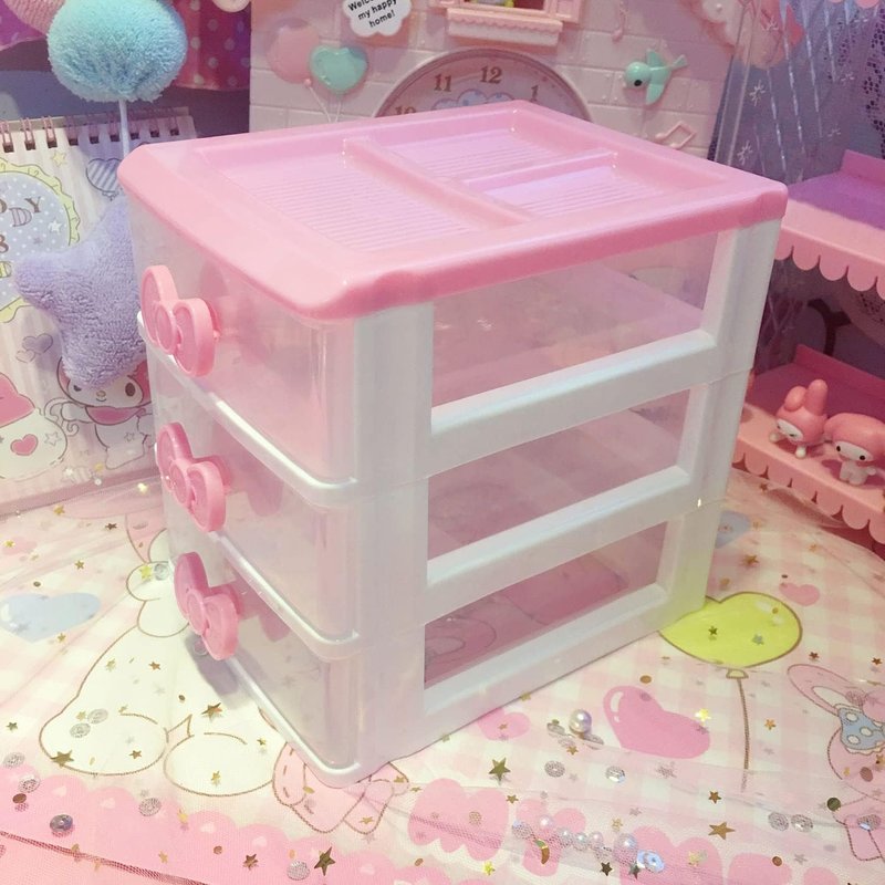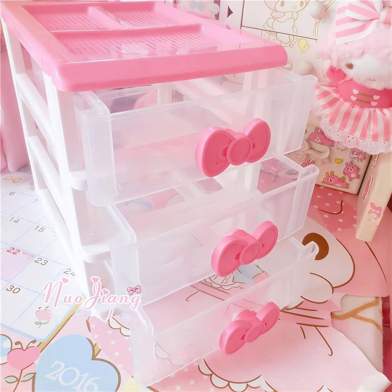 Item: lovely receiving storage cabinets box organizer with three-tier desk receiving drawer and pink bowknot