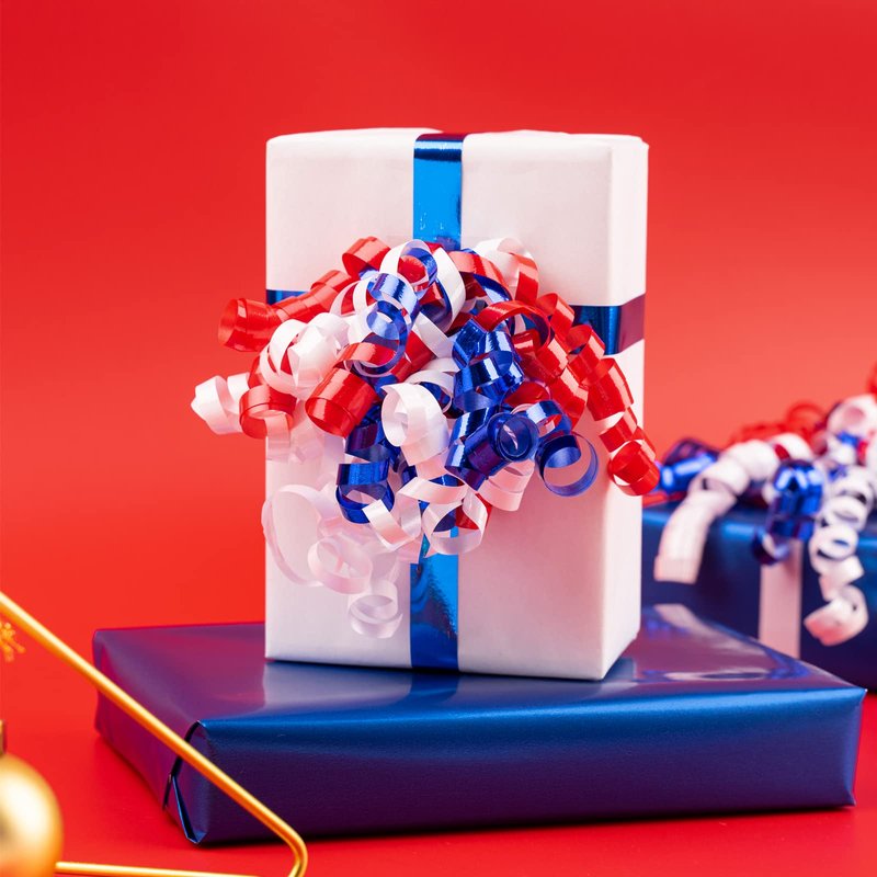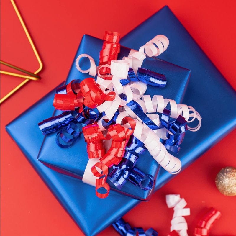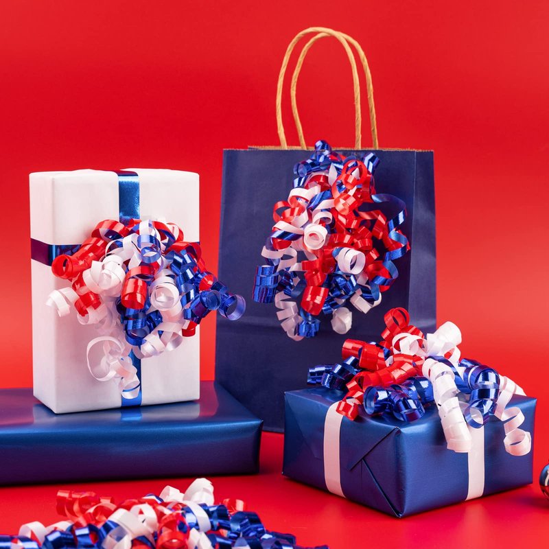 WRAPAHOLIC 12-Count 4th of July Self-Adhesive Curly Bows Gift Wrap Accessory - Blue/Red/White Curly Bows, Perfect for Independence Day, Memorial Day, Christmas, Birthday, Party Favors Decorations