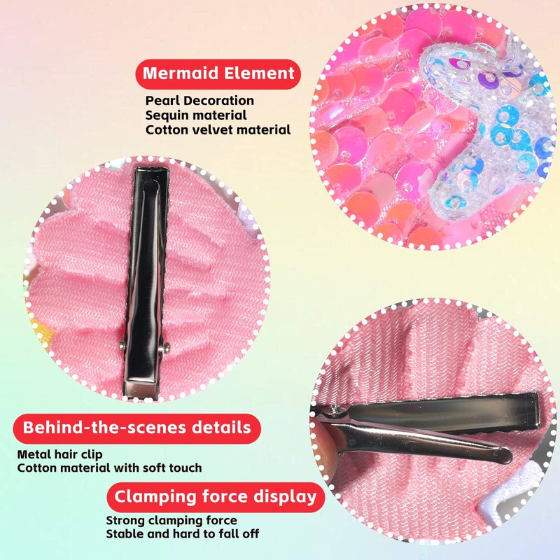 - High Quality:Metal alligator mermaid clips made of high quality sequins, fabric and metal alloy.Not only can it firmly fix the hairstyle, but it can also provide a comfortable experience for the wearer