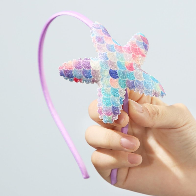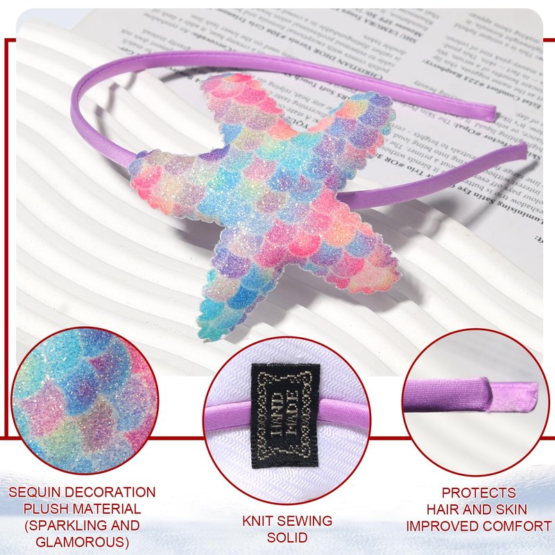WRBAJIS Starfish Headband Glitter Fish Scale Hair Bands Sparkling Sea Star Hair Hoop Mermaid Hair Accessories for Women Girls Birthday Wedding Festival Celebration Party Supplies(Purple)