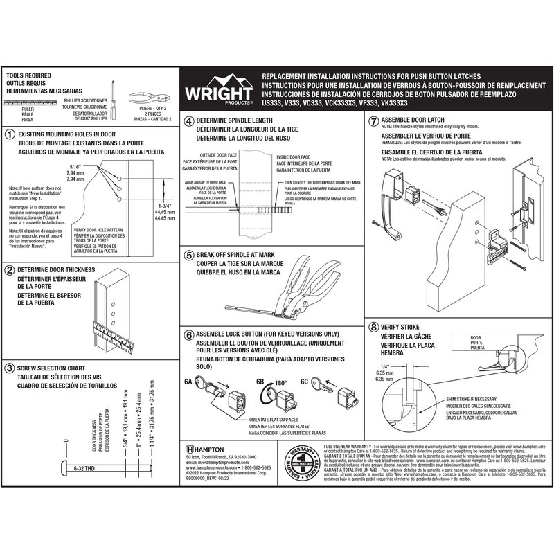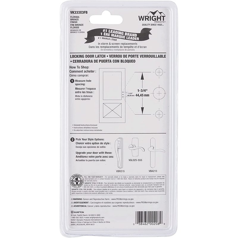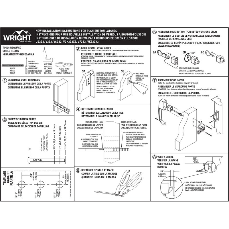- READY TO INSTALL: All installation hardware is included. Installs in three 5/16” holes and contains two sizes of strike plates and shims to provide adjustment for varying backsets. The latch also has a mounting hole with 1.75” spacing.