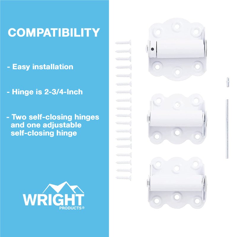 Wright Products V226WH, 2 3/4" Adjustable & Self Closing Door Hinges, Set of 2 Self Closing Hinges and 1 Adjustable Self Closing Hinge, White